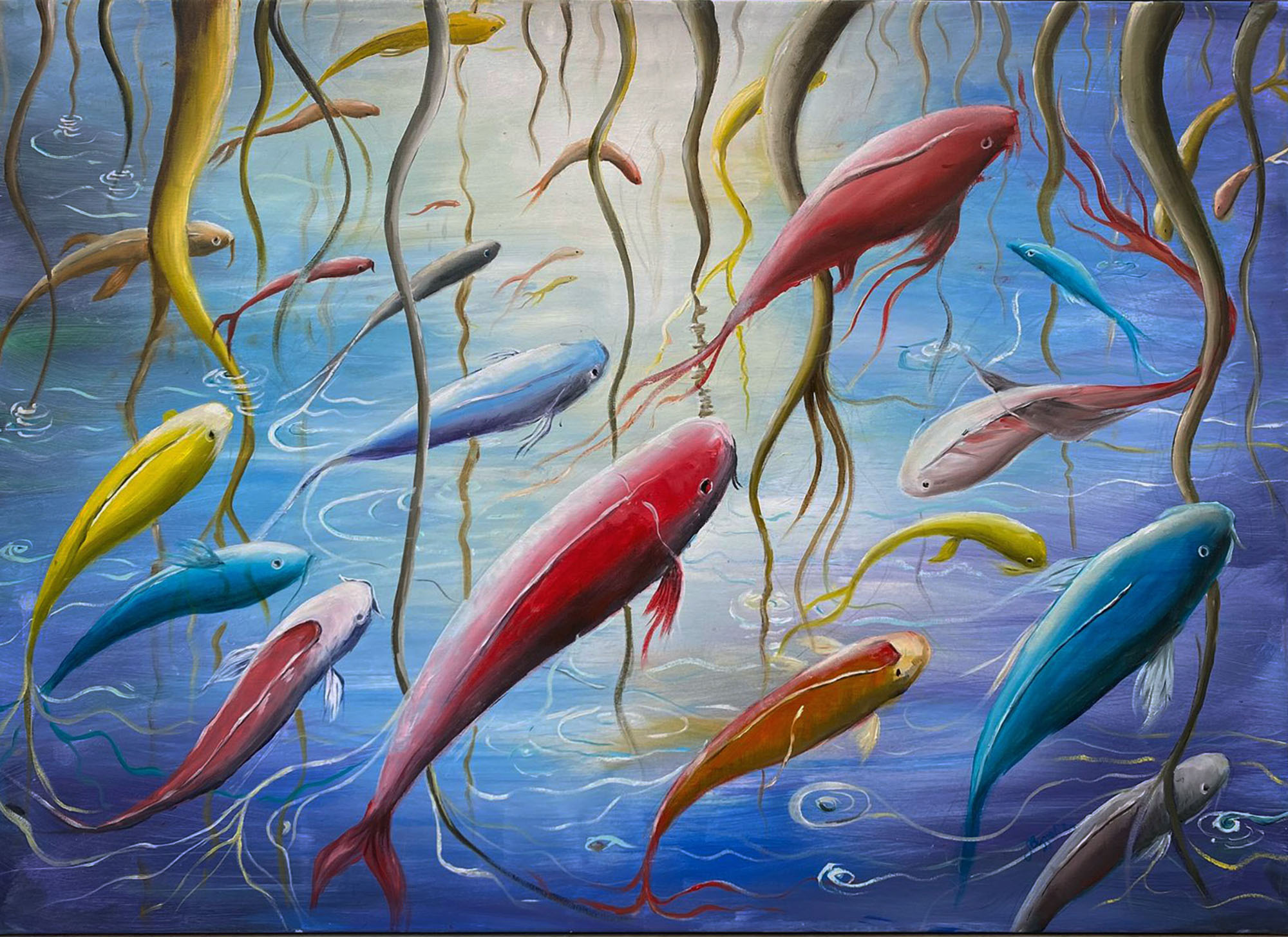 Dipinti realizzati dagli allievi, intelligenza artificiale come ispirazione.